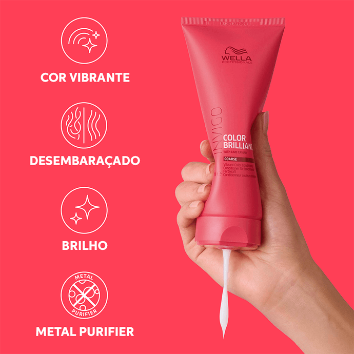 Wella Professionals Invigo Color Brilliance Conditioner possui alta tecnologia e ativos antioxidantes que combatem o desbotamento e protegem da mudança de tom. Ele tem fórmula rica em vitaminas que nutrem o cabelo e melhoram a superfície dos fios. Assim, você sente seu cabelo desembaraçado, macio, com a cor brilhante e preservada.