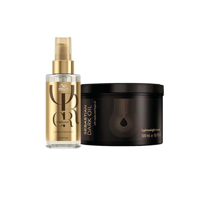 O Kit Sebastian Professional Dark Oil com Oil Reflections contém uma Máscara Sebastian Professional Dark Oil 500ml e um Óleo Oil Reflections 100ml