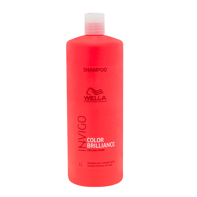 Shampoo para cabelos coloridos. Wella Professionals Invigo Color Brilliance Shampoo limpa os fios de forma otimizada para proteger do desbotamento. Ele consegue preservar a cor vibrante por até 7 semanas. Wella Professionals Invigo Color Brilliance Shampoo tem uma fórmula que ajuda a fechar as cutículas dos fios para que eles consigam reter melhor a coloração. Assim, seu cabelo fica limpo, com um brilho bonito, toque macio e cor duradoura. Outro grande diferencial da linha é o perfume sofisticado, um amadeirado cítrico floral. Bruno Lotufo, embaixador de Wella Professionals que assinou o visual da campanha, diz: “Invigo Color Brilliance tem uma fragrância muito boa e, outra coisa que gostei muito, é a leveza do produto. Ele trata sem pesar”. Caviar de Lima: possui alta concentração de vitaminas e antioxidantes, que ajudam a prolongar a vivacidade da cor e proteger. Histidina e Vitamina E: ajuda a controlar o processo de oxidação dos fios após a coloração a fim de proteger a cor. Moléculas Encapsuladas de Cobre: mantêm o tom vibrante. Aplique o shampoo pelo cabelo úmido. Massageie gentilmente para fazer espuma. Em seguida, enxágue. Se necessário, repita o processo.